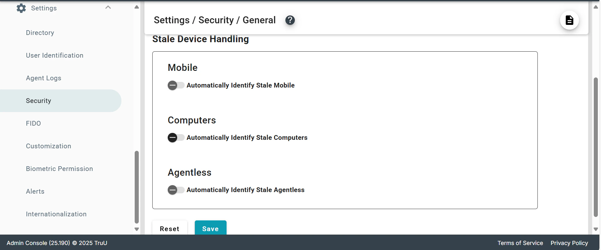 - To configure Stale Device Clean-Up, navigate to Admin Console > Settings > Security > General and locate the Stale Device Handling section