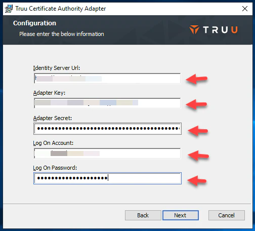 - The existing TruU adapter configuration will already have the following information populated