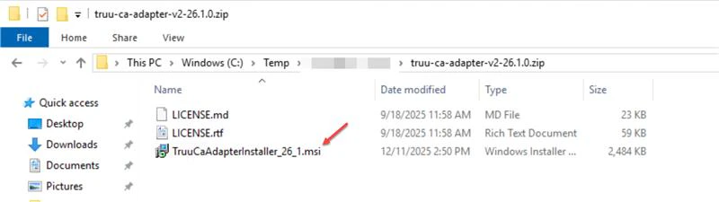 - Extract the ZIP file and Double-click the TruuCaAdapterInstaller_26_1.msi