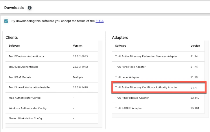 - Click on the TruU Active Directory Certificate Authority Adapter. This will download a .zip file