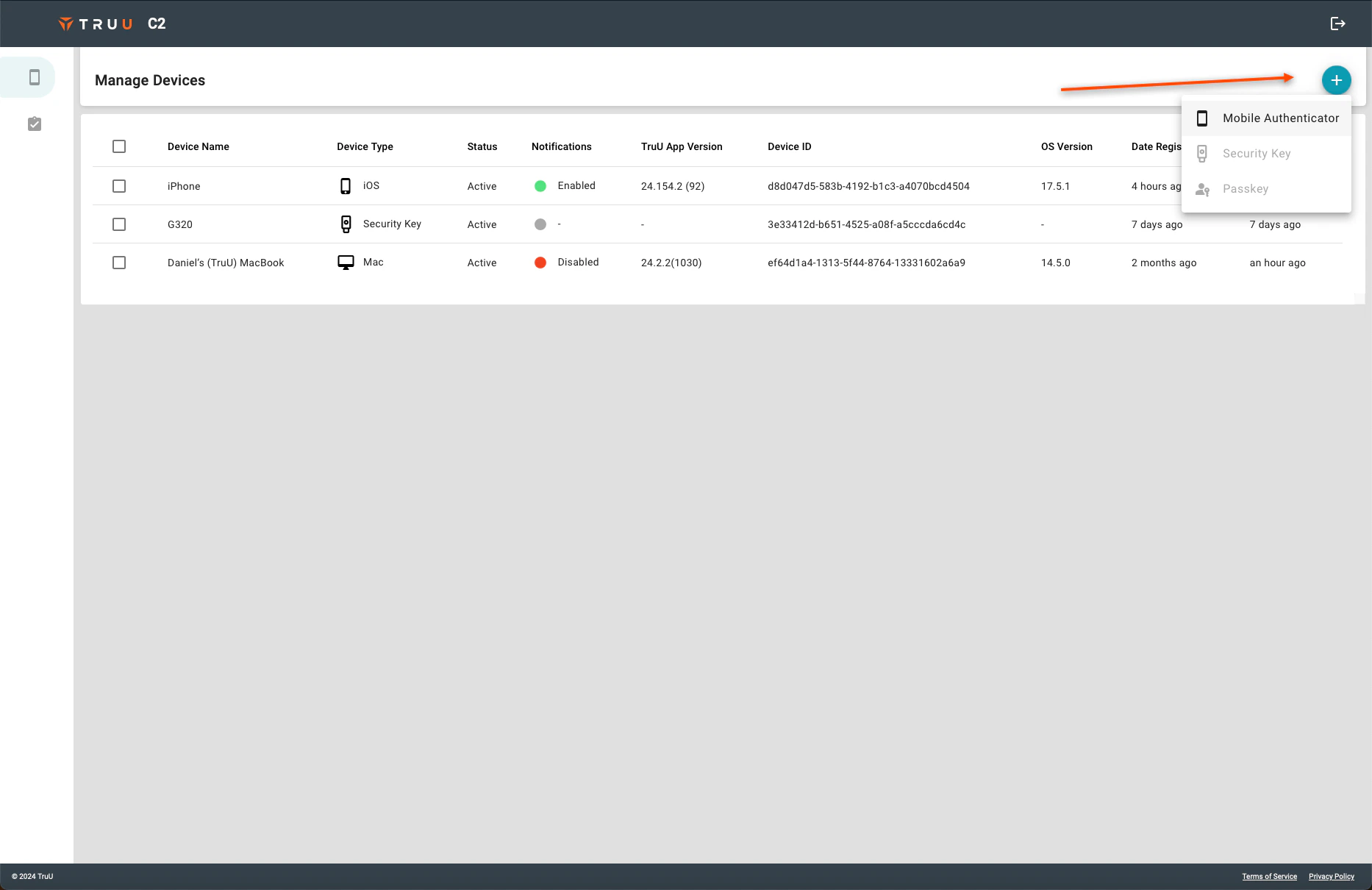 - On the right side of the screen, click the blue (+) and then select which type of device you wish to add